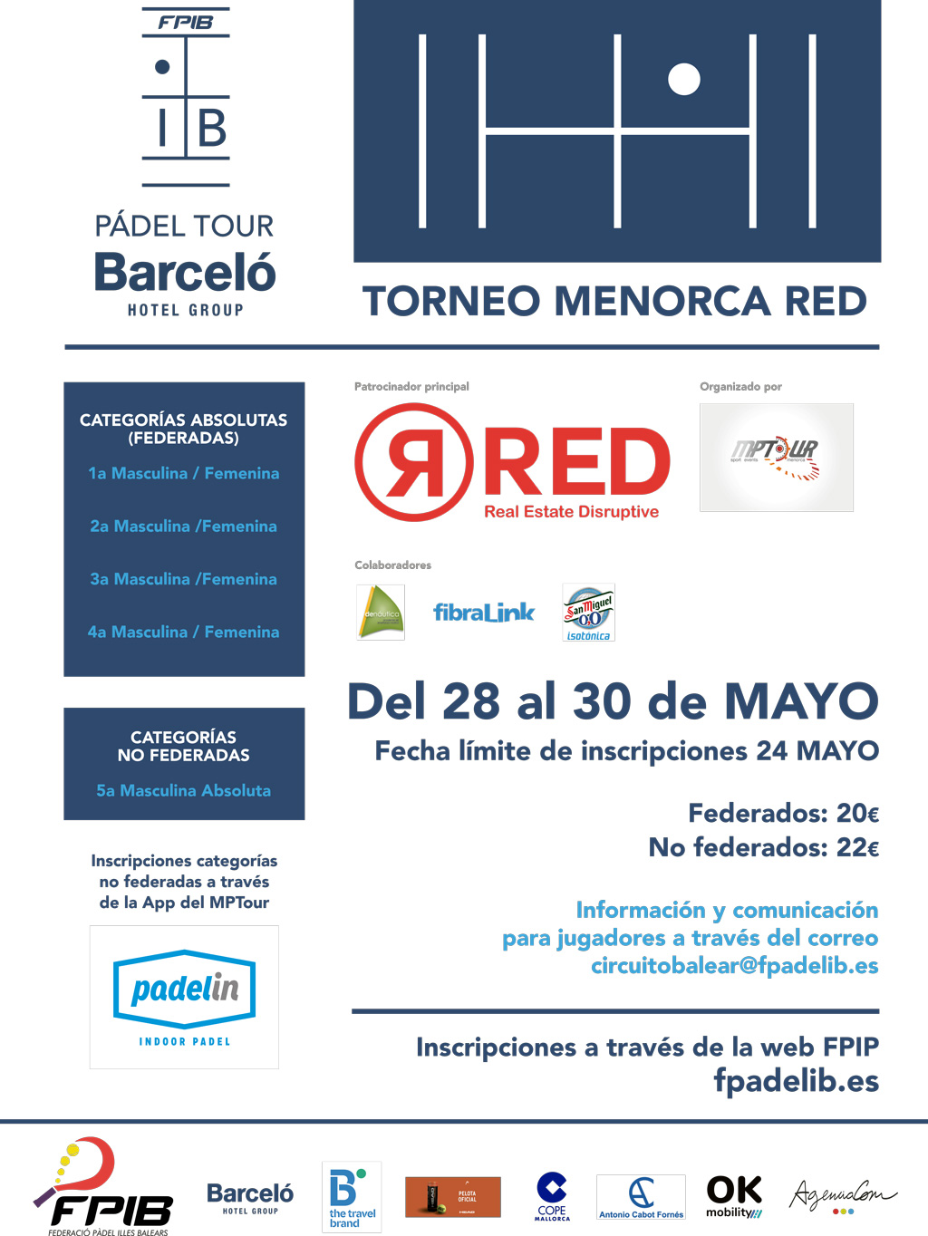 Os informamos que hemos abierto las inscripciones de la tercera prueba del IB Pádel Tour Barceló Hotel Group, torneo Menorca Red del 28 al 30 de mayo. En esta ocasión nos trasladamos a Menorca en concreto al club Padel In de Sant Lluis.